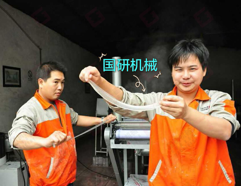 5、該機生產的拉皮、粉皮厚薄可任意調節,保全了原料的全部營養成份,味道鮮美,清亮剔透。