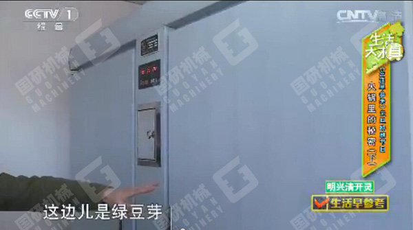 2015年1月3日早8:33,中央電視臺一套《生活早參考》( 20150103 元旦特別節目火鍋里的秘密) 播出了市場上毒豆芽的生產和危害,并重點播放了位于北京朝陽區東壩后街臨77號的良仕德(北京)餐飲管理有限公司所屬的快餐店使用國研豆芽機自行生產無公害豆芽的情景,國研牌無公害豆芽機在該節目中進行了詳細介紹和推崇。國研牌綠色無公害豆芽機成為抗擊毒豆芽最佳的無公害豆芽生產設備,受到食品行業的廣泛歡迎。