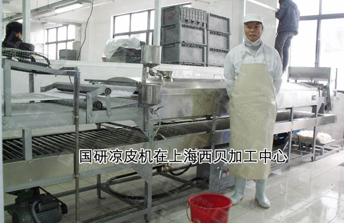 近來有媒體調(diào)查后發(fā)現(xiàn)與2000年相比,如今一份最普通的涼皮價(jià)格已上漲至六元以上,除去經(jīng)濟(jì)發(fā)展推動(dòng)物價(jià)提升,近年來調(diào)價(jià)主要因素是人工成本增高。以陜西涼皮為例,使用人工制作需要經(jīng)歷五六道洗面筋工序,將所得面糊靜置分層后倒掉上層清水,倒入模具蒸熟,隨后晾涼取出切條。涼皮的制作過程需人工不停揉搓面粉,搬弄器具,蒸汽溫度高,人工較為辛苦,在勞動(dòng)力成本愈發(fā)高漲的現(xiàn)今,愿意做這種體力活的人更是難以雇到!這就急需自動(dòng)涼皮機(jī)的助力,從生產(chǎn)力來看,人工制作涼皮少說需要一天的時(shí)間進(jìn)行制作,自動(dòng)涼皮機(jī)卻能夠在一小時(shí)內(nèi)完成上千斤的產(chǎn)品,生產(chǎn)效率大大提高。國(guó)研涼皮生產(chǎn)線可從和面、洗面、儲(chǔ)槳、攪拌抽槳、刮槳、蒸片、切條、冷卻輸送、定長(zhǎng)切斷到成品流程生產(chǎn),人工只需要物料轉(zhuǎn)移和收涼皮即可。