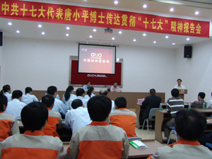 報(bào)告會(huì)上,唐博士暢談了參加十七大會(huì)議的親身感受以及自己對(duì)十七大報(bào)告的理解。整個(gè)十七大報(bào)告是對(duì)過(guò)去成果的總結(jié),對(duì)當(dāng)前理論的系統(tǒng)闡述,對(duì)今后建設(shè)任務(wù)的描述,對(duì)未來(lái)的努力方向有著明確的指引。唐博士高度概括了十七大精神,認(rèn)真詳細(xì)的向與會(huì)的員工宣講了中共中央在十七大的重要決策和會(huì)議精神。他的報(bào)告極大地激勵(lì)鼓舞了員工的士氣,為國(guó)研機(jī)械在今后推動(dòng)企業(yè)科學(xué)發(fā)展,構(gòu)建和諧企業(yè)指明了努力的方向。隨后,天河區(qū)珠吉街黨工委書(shū)記黃澤鵬作了總結(jié)講話。