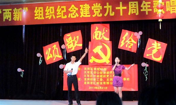 6月21日上午,“頌歌獻給黨”——天河區“兩新組織”紀念建黨九十周年歌唱比賽在龍洞街文化站如期舉行。